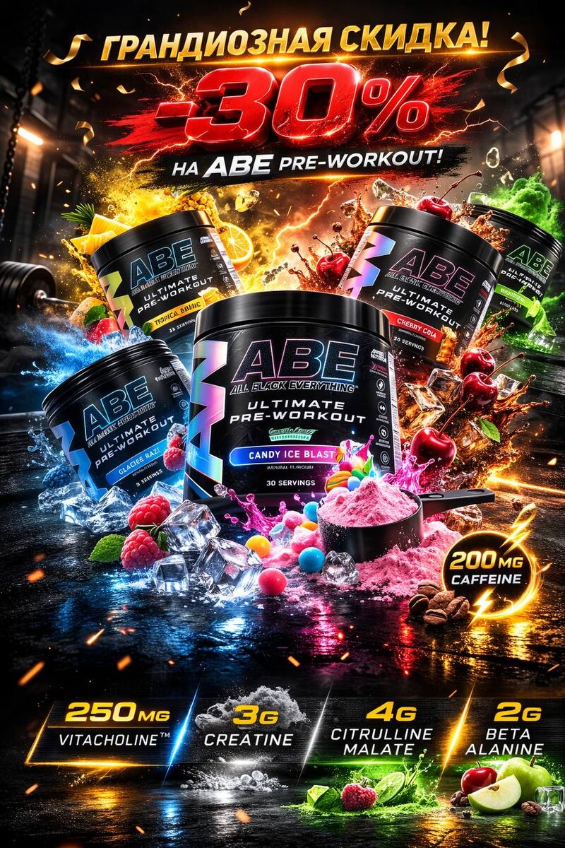 ! 🔥 Хочешь максимум энергии, фокуса и пампа на тренировке? Сейчас самое время попробовать легендарный ABE Pre-Workout со скидкой от 30% 💥 ⚡ Мощный заряд энергии 🧠 Концентрация без «ватной» головы 💪 Сумасшедший памп 🏋️ Больше повторений — больше прогресса ABE — это: ✔️ 200 мг кофеина ✔️ Бета-аланин для выносливости ✔️ Цитруллин для пампа ✔️ Витамины группы B для энергии Идеально перед силовой, кроссфитом или тяжёлым кардио. ⏳ Скидка действует до конца месяца! Количество товара по акции ограничено. Твоя лучшая тренировка начинается с правильного предтрена 🚀 🤩🤩🤩🤩🤩🤩🤩🤩🤩🤩🤩 🤩Подписаться на PitalovoLabs🤩 🤩🤩 Заглянуть на сайт 🤩🤩 🤩🤩🤩🤩🤩🤩🤩🤩🤩🤩🤩 📱 Вконтаке 📱 Instagram* 📱 MAX *запрещенная в РФ организация 🤩🤩🤩🤩🤩🤩🤩🤩🤩🤩🤩 ❓По всем вопросам @pitalovolabs 🛍Магазин в телеграм @pitalovo_labs_bot 🤩🤩🤩🤩🤩🤩🤩🤩🤩🤩🤩 #ABE #AppliedNutrition #предтрен #preworkout #спортпит #скидка #тренировка #фитнес #зал #памп