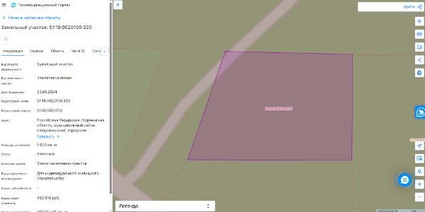 Название: Земельный участок с кадастровым номером 51:18:0020106:335 площадь 1000 по адресу Российская Федерация, Мурманская область