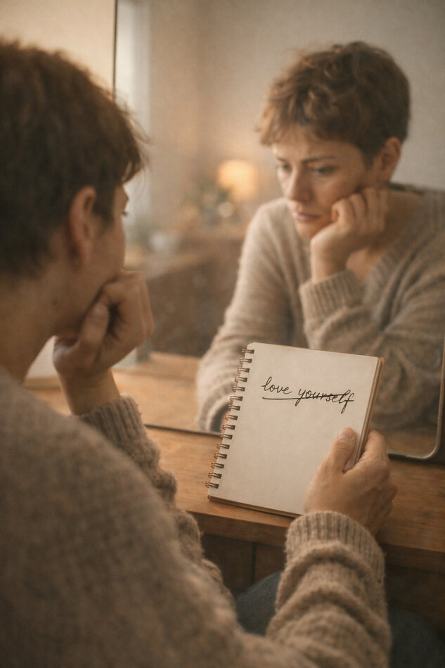 Вы когда-нибудь встречали совет в интернете из серии «просто начни любить себя»? Звучит прекрасно. Лаконично. Вдохновляюще. И — положа руку на сердце — совершенно бесполезно. Представьте: человек годами слышал, что он недостаточно умный, красивый, успешный. Что он «не такой». Что мог бы стараться больше. Что вот Маша из соседнего подъезда — та да, молодец. А он — ну, так себе. И вот он, уставший и немного потрёпанный жизнью, читает мотивирующий пост: «Ты достоин любви! Просто поверь в себя». И что — всё? Исцелён? Занавес, титры, счастливый конец? Нет. Он закрывает телефон и чувствует себя ещё хуже. Потому что теперь у него новый повод для самокритики: даже «правильно любить себя» не получается. Поздравляем, уровень разблокирован. Самооценка — это не выключатель Главное заблуждение нашего времени — идея о том, что отношение к себе можно изменить усилием воли. Решил — и готово. Захотел — и вот ты уже уверенный, спокойный, весь такой принимающий себя человек с хорошей осанкой и зелёным см