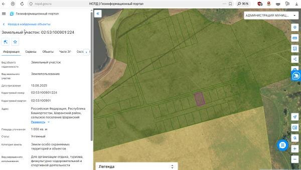 Название: Земельный участок с кадастровым номером 02:53:100901:224, из категории земель особо охраняемых территорий и объектов, вид