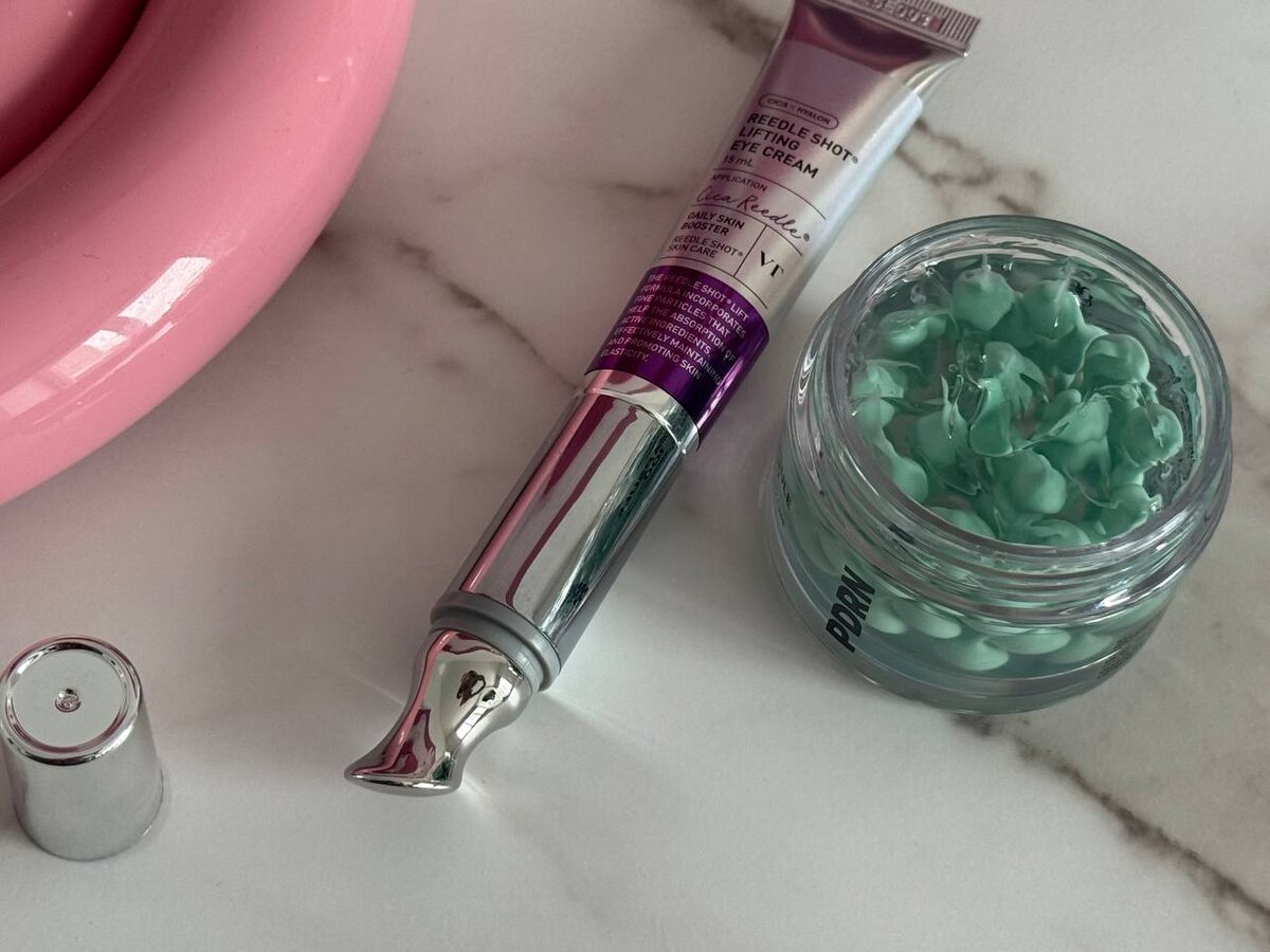 В мире ухода за кожей часто приходится выбирать между быстрым видимым эффектом и глубокой заботой о здоровье кожи. Однако, корейский бренд VT Cosmetics предлагает не выбирать, создав дуэт, который работает на два фронта: мгновенно преображает кожу, в долгосрочной перспективе работая на anti-age профилактику. Речь идет о тандеме капсульного крема для лица PDRN Capsule Cream 100 и массажного лифтинг-крема для век с микроиглами Reedle Shot Lifting Eye Cream. 🧬 Первый участник дуэта - PDRN Capsule Cream 100 - ломает стереотип о том, что кремы обязательно должны быть плотными и тяжелыми для кожи. Его текстура - прозрачный гель, в котором плавают тысячи зеленых капсул с PDRN - полинуклеотидами, добытыми из корня женьшеня. Подробнее о нём я писала в этой статье. При соприкосновении с кожей эти капсулы тают, высвобождая активные компоненты. В отличие от многих восстанавливающих средств, он не создает эффекта парниковой пленки или жирного блеска: кожа получает глубокое увлажнение и становится