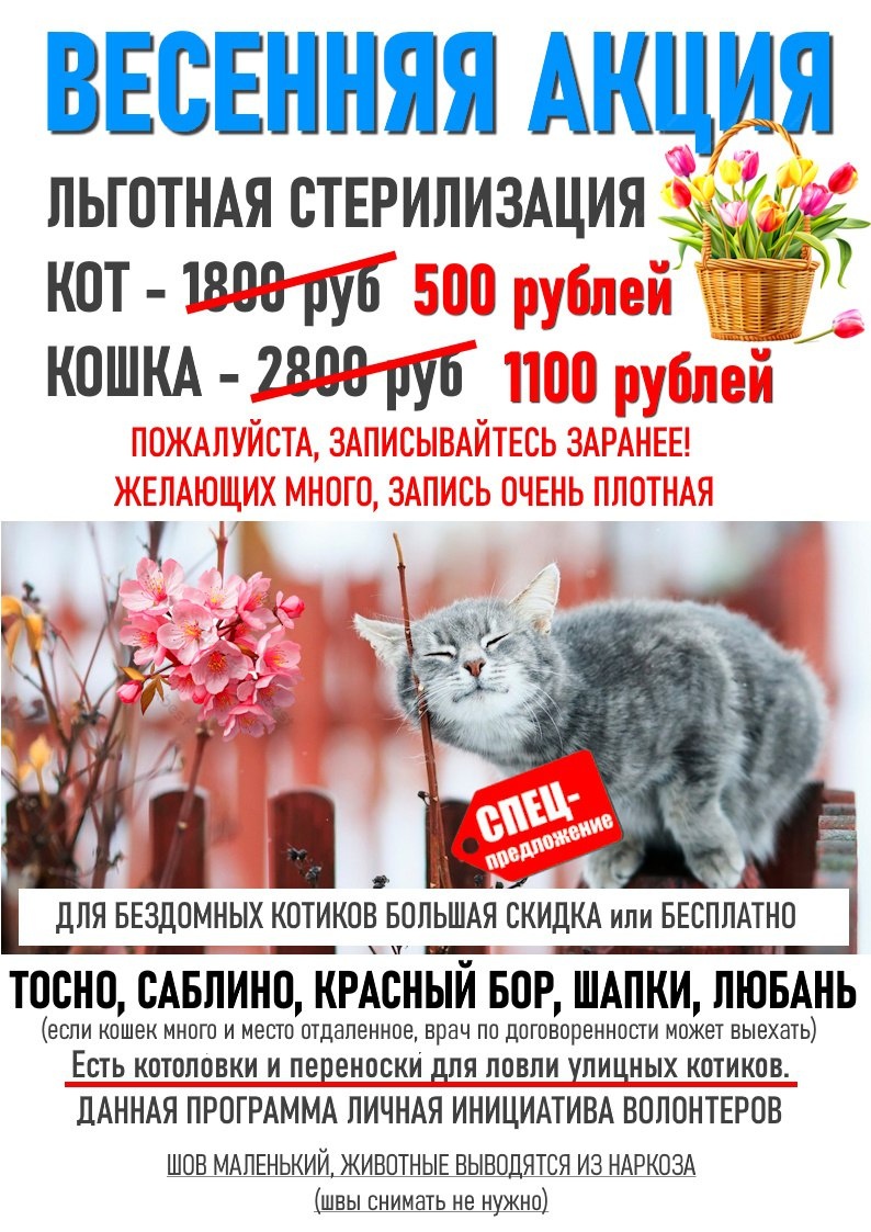 ). Итого 1 943 кошка с мая 2021. Котов я не учитываю. 🍀Отчет по двум врачам. Чуть позже будет третий Программа стерилизации устроена так: 1. Я договорилась с врачами, что я покупаю препараты и расходники 2. Я распространю информацию о бесплатной и льготной стерилизации. 3. Собираю заявки. 4. Когда у людей нет денег или кошка уличная, то я оплачиваю стерилизацию кошек. Бывает, что после оплаченной стерилизации кошка едет домой (или кот). 5. На своих дачах я ловлю и оплачиваю стерилизацию всю полностью все 6 лет. 6. Помогаю соседним СНТ, людям, приютам, волонтёрам и так далее оплатой стерилизации. 7. У меня много кошколовок, переноски, клетки, которые розданы для ловли кошек на стерилизацию. Хочу сказать огромное спасибо за донаты, так как большая часть из них и идёт на оплату стерилизации бездомных кошек. И, конечно же, за посылки ❤️ ✅ Посылки для стерилизации https://dzen.ru/media/animalrescueed/chto-mojno-kupit-na-ozon-ili-vaildberiz-dlia-sterilizacii-bezdomnyh-koshek-69008894802