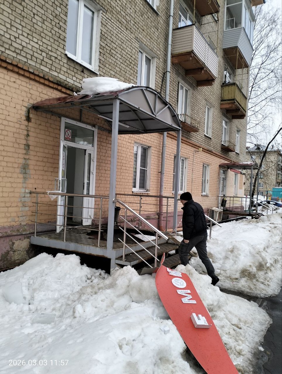 Октябрьской. Перед нами на фото результат качественной уборки снега и наледи с крыши и, внезапно, рухнувшее крыльцо. От чего оно разрушилось непонятно, предположу, что реагенты, соль + вода разрушили металлический каркас, а дальше нагрузка от плитки и посетителей добили. Заметьте, здесь никаких негодующих граждан с жалобами на не эстетичность содержания торгового помещения нет 🤷🏻 Недорабатывает наш отдел, курирующий торговлю и их задорные служки тоже 😎 #Королёв #Подмосковье #Трифонов #бардак #ЧП #ЖКХ #торговля Предложить новость или обратиться за помощью можно здесь @itsimmerbot