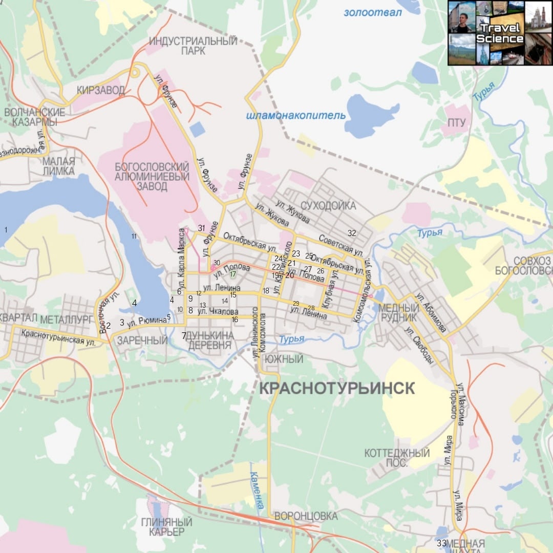 Подробная карта-путеводитель по Краснотурьинску. Сохраняйте и пользуйтесь! 1. Краснотурьинское водохранилище;