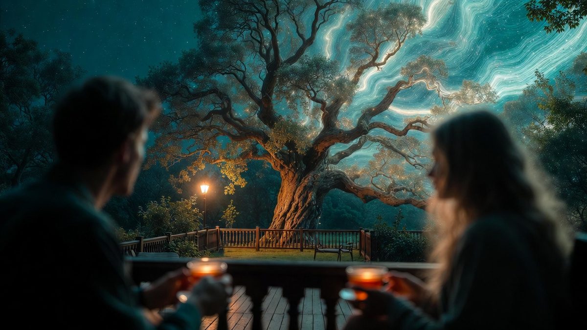 Поздний вечер. Вы сидите с другом на террасе и смотрите на одно дерево за забором. Оба видите одно и то же — кору, ветви, тень от фонаря. Настолько банально, что даже неловко об этом говорить.