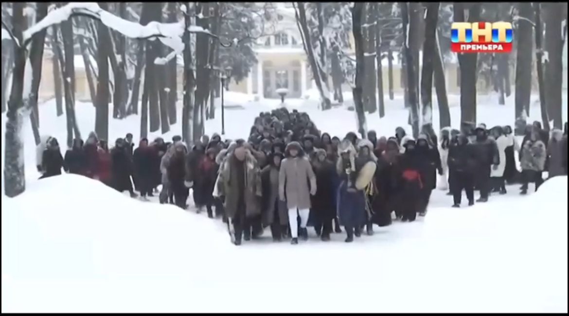 И хотелось увидеть на видео где они идут толпой по снегу, она там тоже в скотче шла или там другой был антураж?