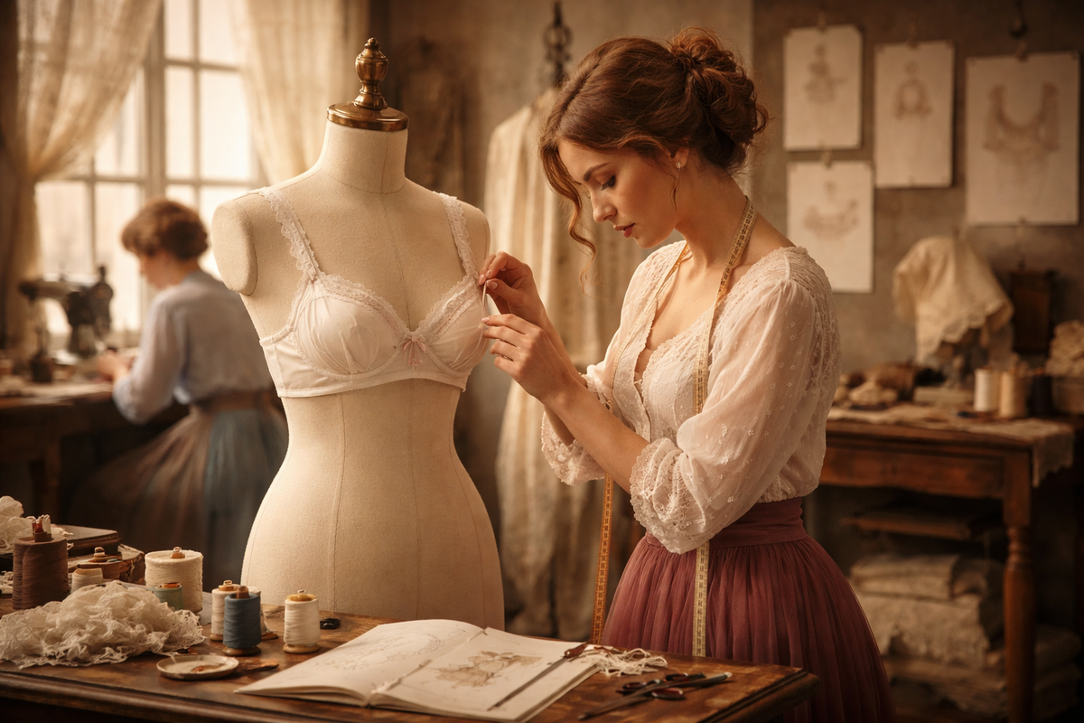 Одна из ключевых фигур ранней истории — французская предпринимательница и мастер белья Эрмини Кадоль (Herminie Cadolle). В 1889 году она представила конструкцию, которую часто называют переходной формой: по сути, корсет “разделили” так, что верхняя часть стала выполнять роль отдельной поддержки груди.