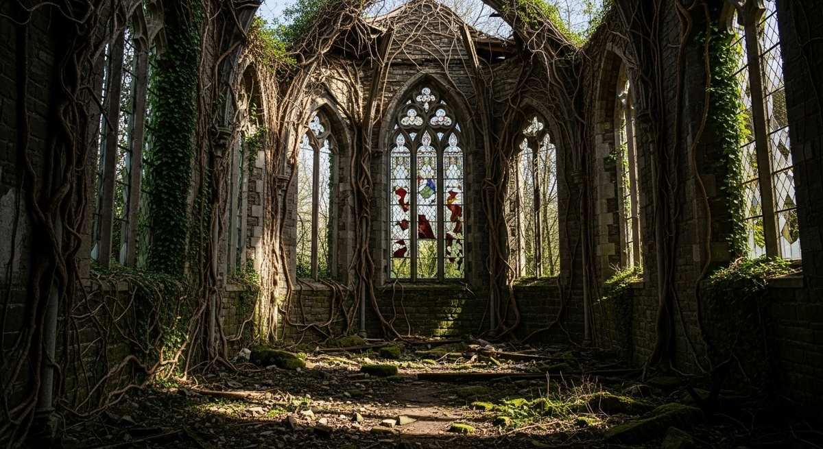 Внизу, в гробовой тишине храма, с оглушительным грохотом захлопнулись массивные дубовые двери. Единственный луч дневного света, падавший на алтарь, исчез, погрузив церковь в вязкий сумрак.