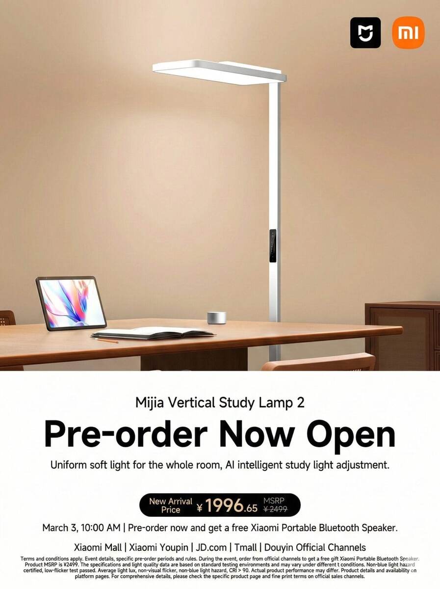 Mijia Standing Study Lamp 2 уже доступен для покупки в Китае по стартовой цене около $330, что на $20 ниже рекомендованной розничной цены в $350. Такое позиционирование делает устройство конкурентоспособным по сравнению с аналогичными продуктами других брендов.
