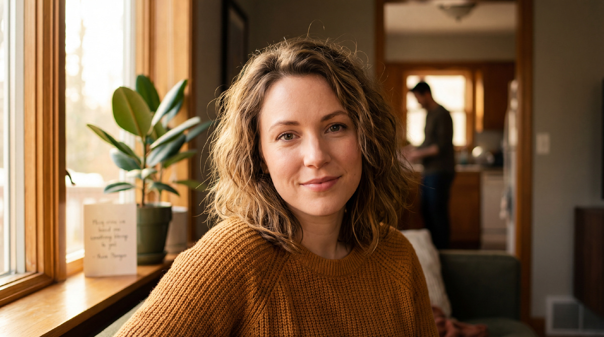 С кухни доносился шум чайника и лязг посуды — Денис мыл чашки. Марина улыбнулась, сама не заметив как.