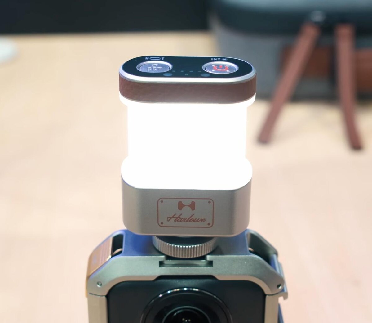 Я про Harlowe Omni 360, "накамерник" для камер 360. Компания Harlowe может быть кому-то знакома под именем Hobolite. О их приборах я пару раз писал и отличаются они не какими-то особыми характеристиками, которые нормальные, но обычные, а офигительным псевдо-винтажным дизайном. Аж хочется купить просто «на полочку поставить». Ребрендинг на это трудно произносимое для нас слово «Harlowe» был проведен, когда стали расширять ассортимент. И теперь, помимо световых приборов выпускают всякие дизайнерские домашние светильники и даже сумки. Но вернемся к Omni 360. Это компактный светильничек рассеянного света мощностью всего 2Вт (ненадолго можно включать буст до 4Вт), умеет светить на 180 или 360 градусов, т.е. в одну сторону или по кругу. Имеет настройки яркости и цветовой температуры, правда, большими шагами. Есть защита от непогоды IP54 - в воду не опустить, но от легкого дождика можно не прятать. Встроенный датчик позволяет включать и выключать свет махнув рукой рядом. Напрямую на камеру Om