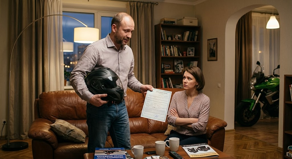 Вы долго копили деньги, смотрели обзоры на YouTube, пускали слюни на авто.ру и, наконец, решились. Вечером за ужином вы торжественно объявляете жене (или маме): «Я покупаю мотоцикл!». Вместо радости за вашу сбывшуюся мечту вы получаете стену непонимания, слезы, крики про «хрустиков» и тот самый классический ультиматум: «Или я, или этот твой гроб на колесах!». Знакомая ситуация? Добро пожаловать в клуб. Прежде чем хлопать дверью и кричать, что вас никто не понимает, давайте разберем, как грамотно «легализовать» байк в семье, сохранить нервы близким и не довести дело до развода. Первое, что нужно понять: ваши близкие кричат не потому, что хотят испортить вам жизнь или запретить иметь хобби. Они кричат от страха. Информационный фон делает свое дело. В новостях не показывают, как байкер благополучно доехал до дачи и съел шашлык. В новостях показывают жуткие ДТП. В голове вашей жены/мамы мотоцикл — это 100% гарантия инвалидности. И бороться с этим страхом нужно не агрессией, а логикой и по