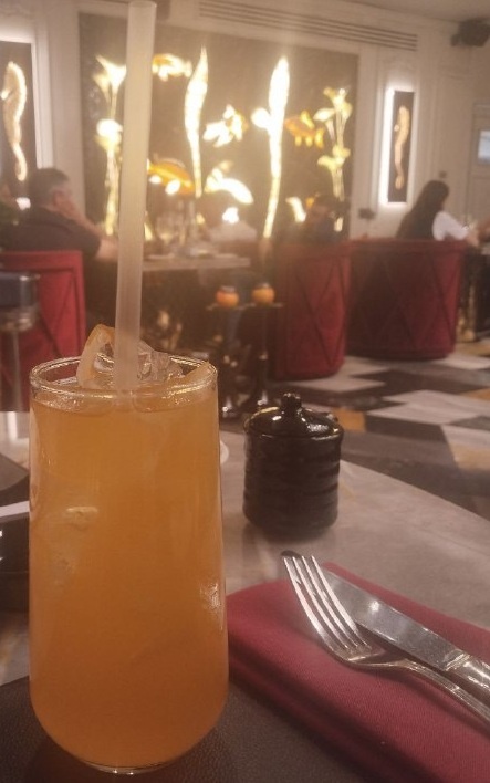 Приносят стакан. Цвет — желто-оранжевый, как зак