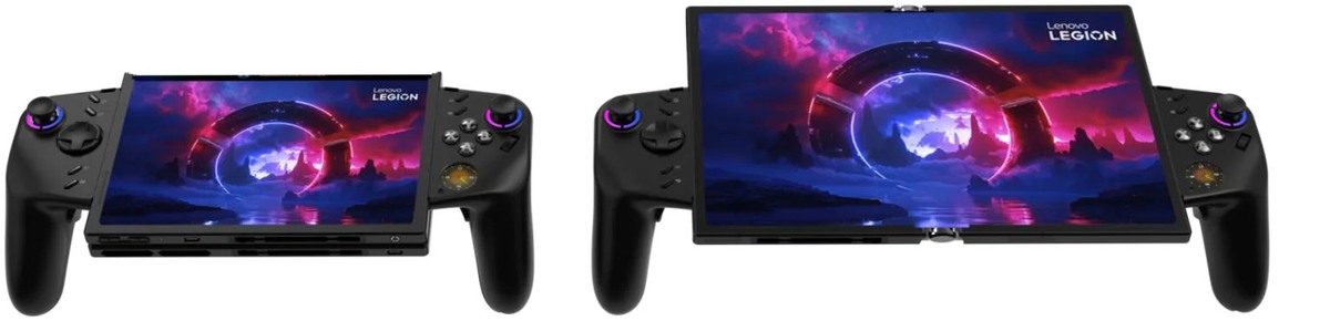 Компания Lenovo представила на выставке Mobile World Congress 2026 (MWC 2026) концепт портативного игрового компьютера Legion Go Fold с разворачивающимся дисплеем, сообщает Notebookcheck. Диагональ гибкого POLED-экрана Legion Go Fold может увеличиваться от 7,2 до 11 дюймов. В полностью развёрнутом состоянии разрешение дисплея составляет 2435 на 1712 пикселей, пиковая яркость 500 нит, а максимальная частота обновления 165 Гц. Источник изображения: Lenovo (и далее) Как и обычный Legion Go, устройство поставляется с двумя съёмными контроллерами, один из которых может использоваться как мышь. Отсоединив контроллеры, пользователь получает планшет с гибким экраном, который может работать самостоятельно и трансформироваться во что-то наподобие ноутбука при подключении клавиатуры и мыши. Таким образом, концепт Legion Go Fold является многофункциональным трансформируемым устройством, которое можно использовать в качестве портативной игровой консоли. С точки зрения универсальности концепция устр