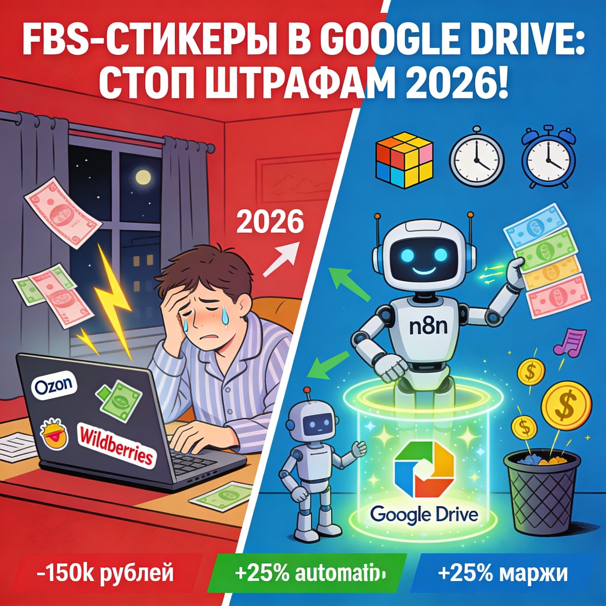 Проснулись утром 2026-го и увидели 50+ штрафов за "неотгруженные" FBS-заказы? 🤯 Рутинная загрузка стикеров в Google Drive жрет 4-6 часов в