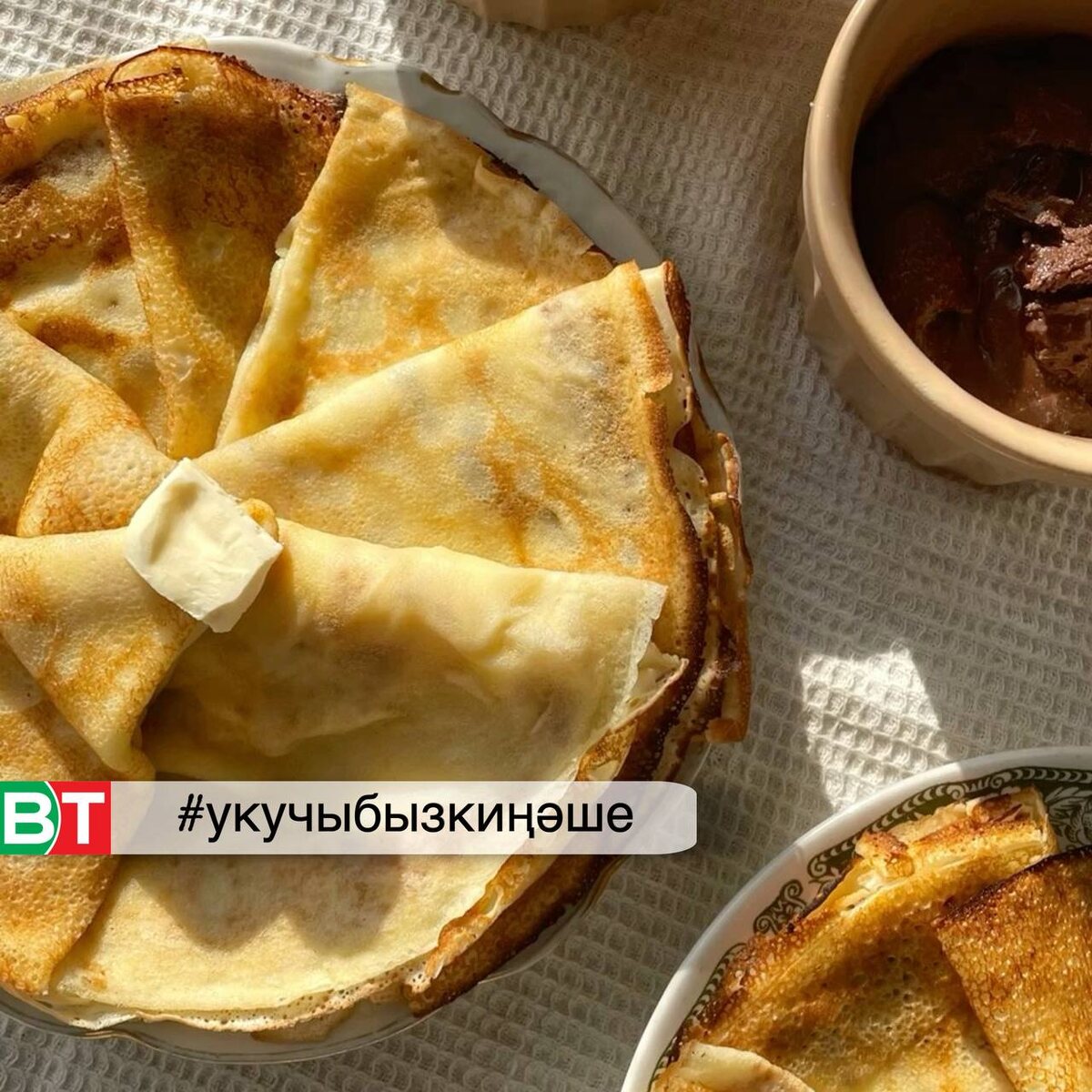 👇🏻 саклап куй, дустыңа юлла Кирәк: 1 стакан бодай оны, 2,5 стакан газлы су (шифалы су), 1 аш кашыгы шикәр комы, тәменчә тоз, 1 йомырка, табаны майлау өчен үсемлек мае, беленнәрне майлау өчен атланмай. Онга (иләргә кирәк) шикәр комы, тоз салып, бергә катнаштырабыз. Өстенә газлы су агызып, сыек камыр ясыйбыз. Табаны, майлап кыздырырга куябыз. Кызганнан соң камыр салабыз. Беленнәрне салмак кына утта ике ягы да алсуланганчы тотабыз. Атланмай белән майлап, бер өемгә өябез. Рәмзия Гафиятуллина рецепты