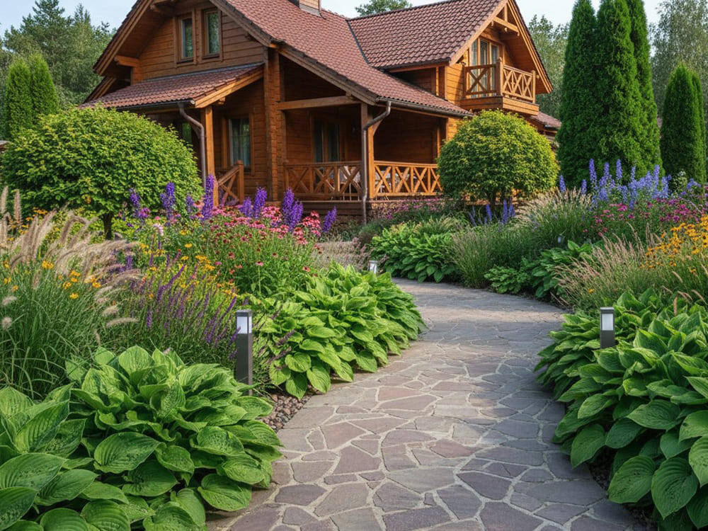 Знакомая ситуация: вы приезжаете в садовый центр, видите роскошный саженец, покупаете его на эмоциях, а потом ходите по участку и не знаете, куда его приткнуть? В итоге вместо картинки из сети получается хаотичная выставка растений. Спонтанные посадки — главный враг красивого загородного пространства. Любое грамотное благоустройство участка начинается с выбора единого стиля. Именно он диктует, какими будут дорожки, материалы мощения и сколько времени вы будете тратить на уход. Разбираем три самых популярных направления и правила их выбора. 1. Английский (пейзажный) сад: благородная естественность Здесь нет прямых углов и строгой симметрии. Дорожки плавно петляют, открывая новые виды. В таком саду роскошно смотрятся ярусные цветники. На фоне плавных изгибов газона великолепно солируют высокие вертикали: фактурные наперстянки и величественные дельфиниумы. А в легкой полутени или у кромки пруда идеально приживутся изящные ирисы. Кому подойдет: любителям классики и романтики, участкам с не