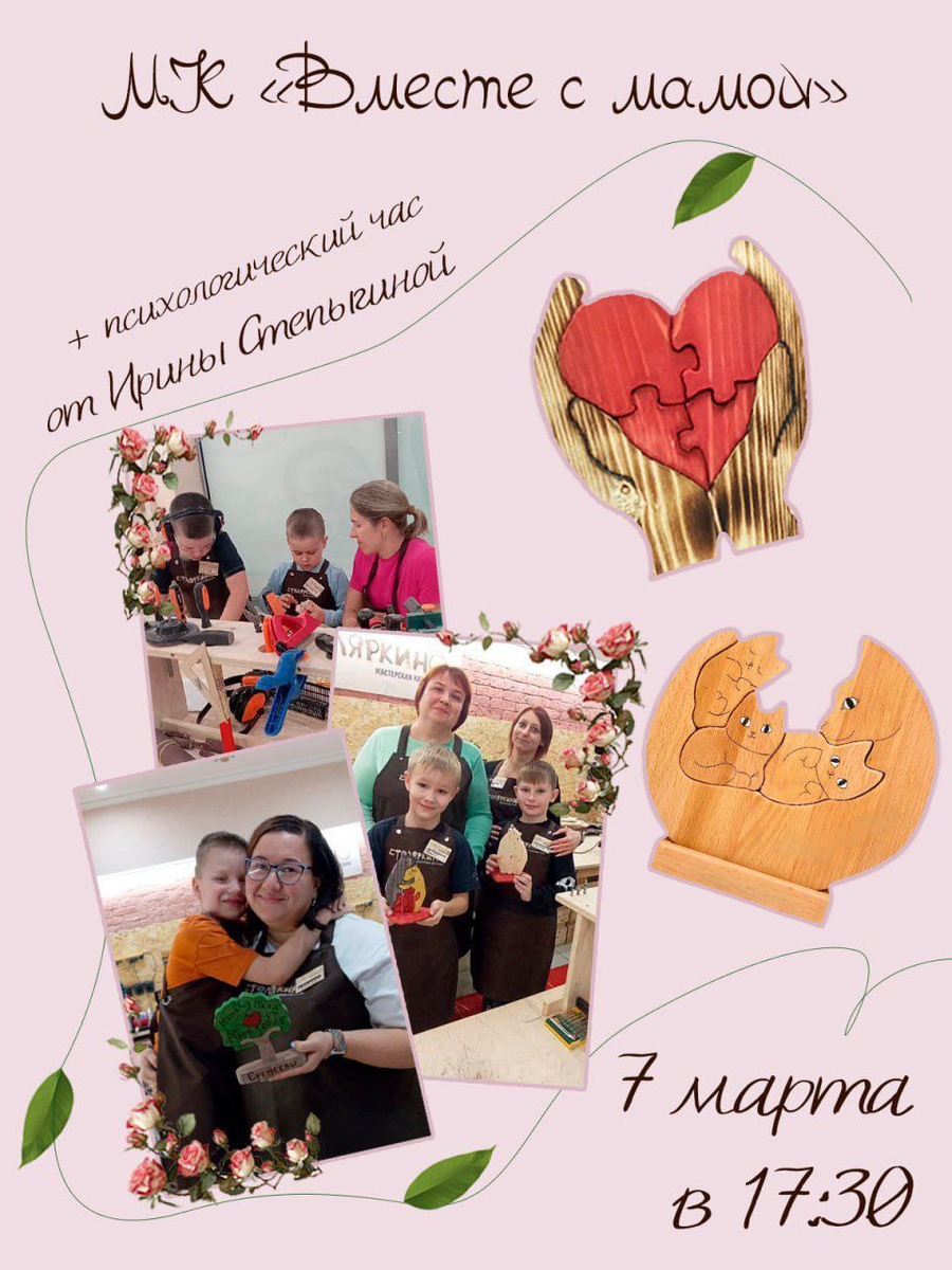 Самый ценный подарок, который мама может сделать себе — это время с ребенком Это - прекрасная возможность разделить увлечение вашего ребенка и пройти совместный тренинг на эмоциональное сближение От руководителя психологического центра, психолога Ирины Степыгиной🌸 Программа «Весенний секрет»: 🔸Узнаем о мечтах друг друга 🔸Создадим общую картину семейного счастья 🔸И главное — сделаем деревянный талисман и спрячем внутри него секретное послание с пожеланиями Это будет ваша маленькая семейная реликвия🫶 Стоимость - 2600р за пару мама+ребенок Так же вас ждут чаепитие и приятные сюрпризы от партнеров🫶 Предварительное бронирование обязательно👇 +7 999 898 16 37 Telegram/МАХ https://t.me/Stolyarka_Serpuhov/565 https://vk.com/wall-225154618_634 🚫 Возраст: 6+ 📆 07.03.2026 🕒 17:30 🏢 Детская мастерская "Столяркино" 📍 г. Серпухов, Московское шоссе, 55, ТРК "Б-класс" ✅ Мероприятия Серпухов https://dzen.ru/id/66f01c6eb4c6fe60c9ca1608 https://vk.ru/serpukhov_events http://dzen.ru/ser