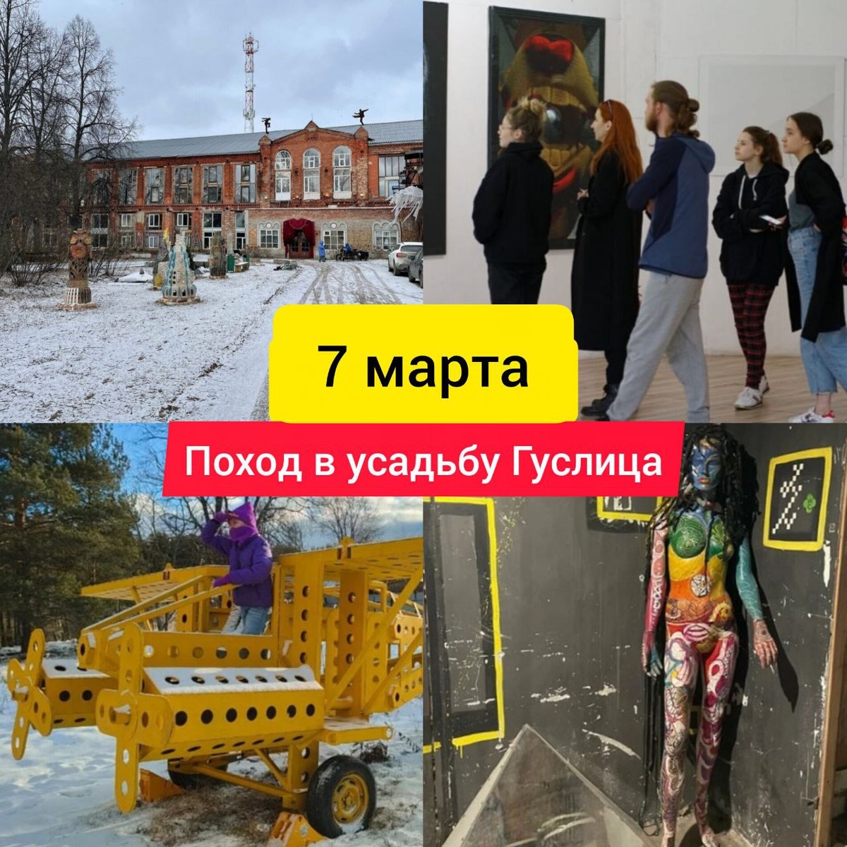 В нашем стремительном мире, полном суеты и постоянного движения, иногда так важно остановиться, вдохнуть свежий воздух и насладиться красотой природы. Одним из лучших способов сделать это является эко-поход. Приглашаем вас в пеший поход с посещением уникальной — творческой усадьбы «Гуслица». Крупнейшая арт-резиденция, расположенная в здании старинной мануфактуры XIX века. Эта территория охватывает 14 000 квадратных метров и включает в себя множество творческих пространств. Помещения для проведения мероприятий и практик, русская баня, столовая, чайная, и гостевой дом, вмещающий до 120 человек. Усадьба «Гуслица» предлагает уникальную атмосферу для творческого самовыражения и познавательного отдыха, вдали от городской суеты. В непосредственной близости располагаются чистые хвойные леса с пешеходными тропами, река, озеро, родники, а также исторические достопримечательности села Ильинский Погост, что делает это место особенно привлекательным для тех, кто ищет вдохновение и умиротворение н