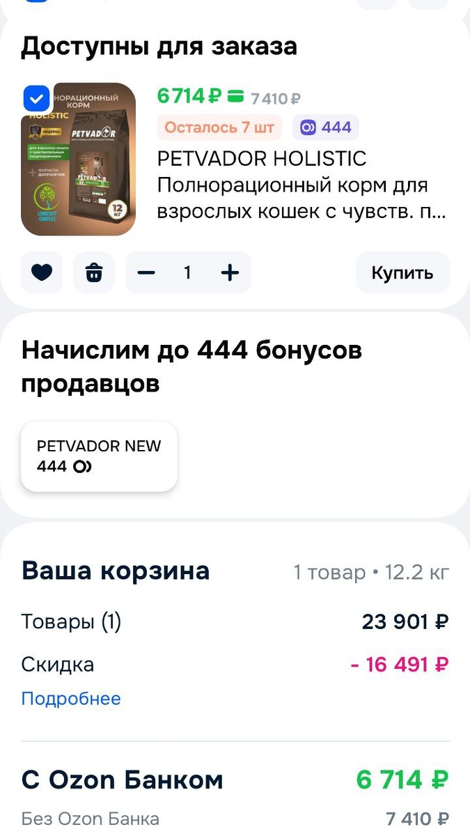Корм даже с оплатой при получении заказывать нельзя на Озон, в отличии от других товаров.