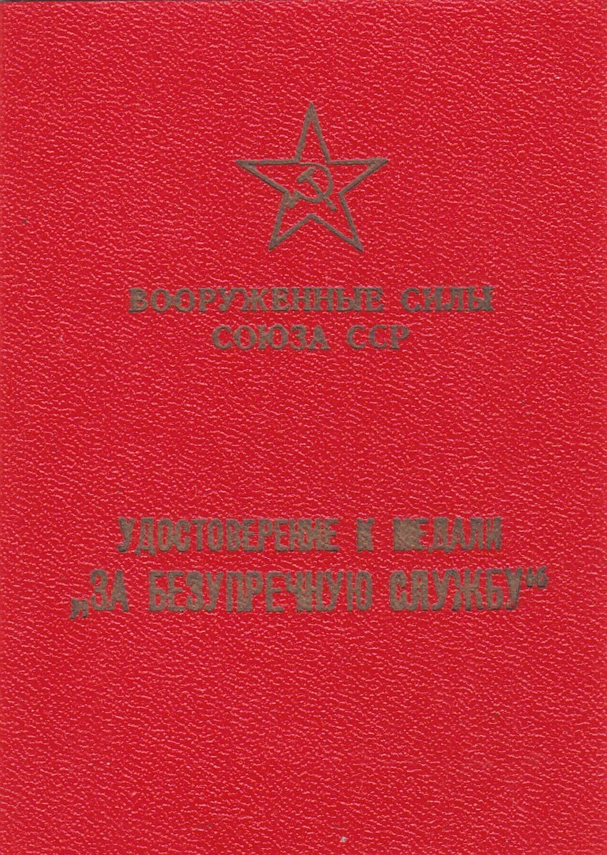 Удостоверение к медали "За безупречную службы в вооруженных силах СССР" 2-й и 3-й степени выданное старшему техник-лейтенанту Кабаченко Ю