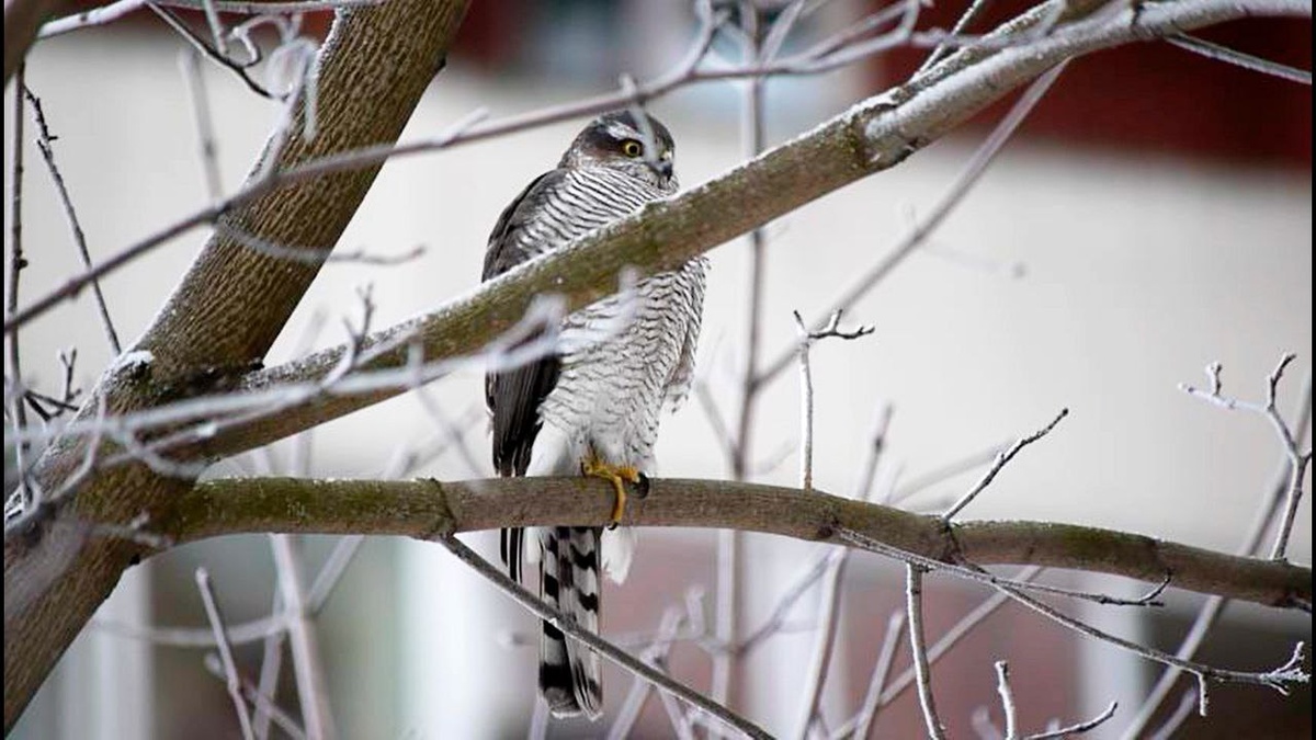 В усадьбе Сосновка в Петербурга заметили небольшого ястреба-перепелятника — грозу местных воробьев, синиц, дроздов и голубей