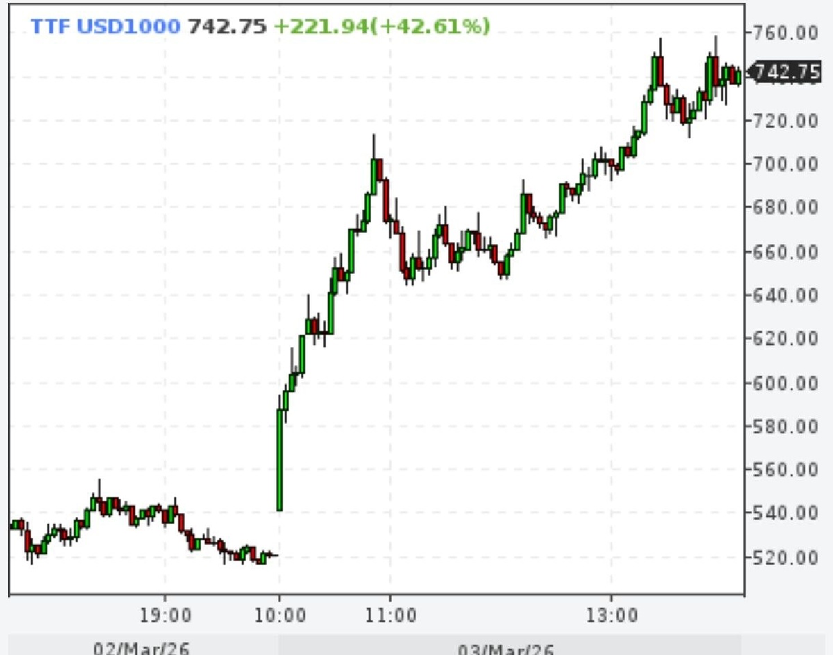 🤦♂️ Уже 740$ за тысячу кубов и рост продолжается. Иранская авантюра Трампа и Нетаньяху на Ближнем Востоке больно бьет по Европе. Подписаться на канал | 📲 MAX Мы в ВКонтакте