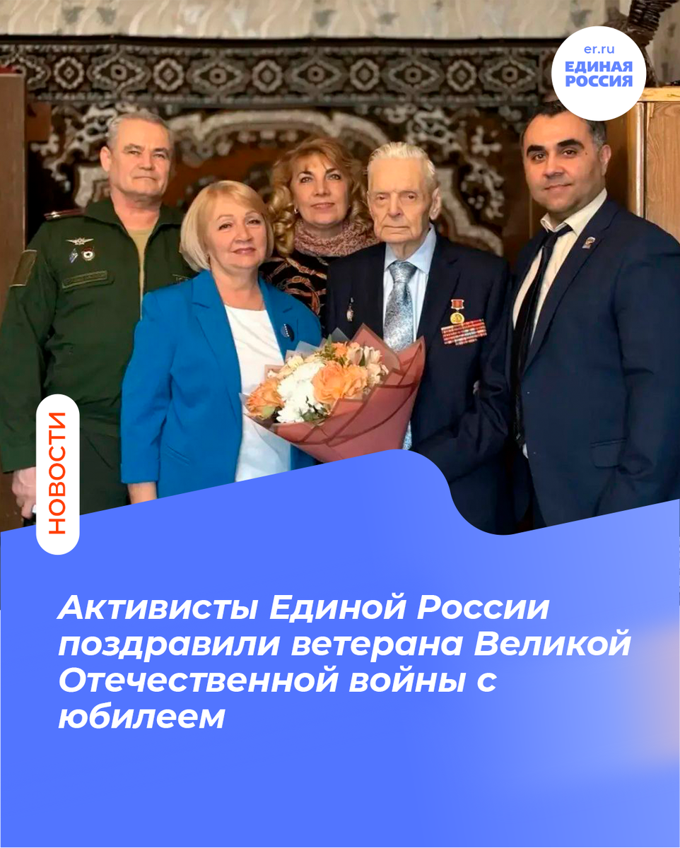 С этим знаменательным событием ветерана поздравили депутат городской Думы Ирина Видина, заместитель главы района по патриотической работе Юрий Кафидов и местный координатор проекта «Старшее поколение» Единой России в Октябрьском районе Рафаэль Байрамов.