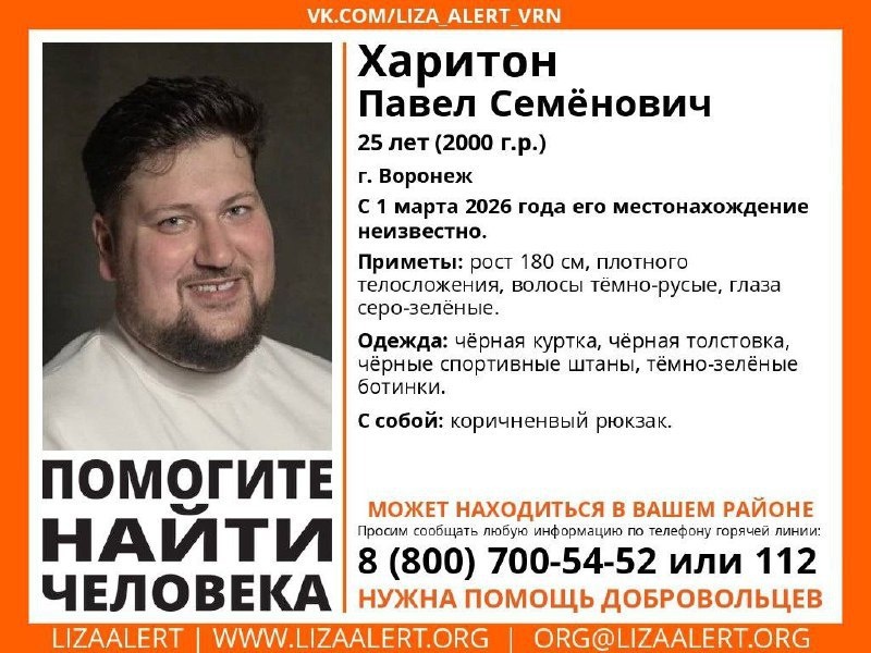 Павел Харитон, 25 лет, пропал 1 марта. Рост молодого человека составляет 180 см, телосложение плотное, волосы темно-русые, глаза серо-зеленого цвета. Отец Павла - Семен Харитон, известный экономист и генеральный директор компании «Воронежпроект».