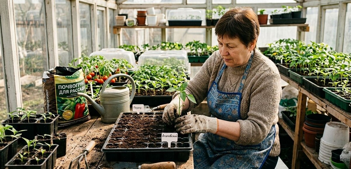 Перец очень чувствителен к пикировке, поэтому идеальный вариант — сразу сеять в отдельные стаканчики объемом 200–300 мл. Если сеете в общий ящик, будьте готовы к очень аккуратной пересадке.