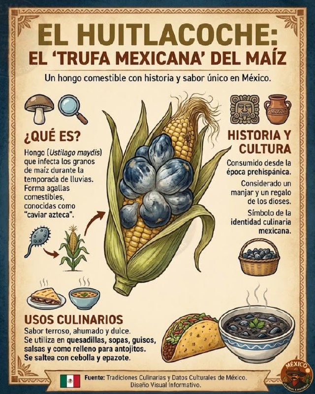 Однако в Лат. Америке с ней бы не согласились. Мексиканцы называют это "Уитлакоче" или "Мексиканский Трюфель". Хотя внешний вид для нас не очень аппетитный, в мексиканской кухне он - настоящее лакомство. Его вкус довольно своеобразный - землистые и копченые ноты, часто описывают как сочетание трюфеля и шампиньона, с лёгким сладковатым приветом к кукурузе. Можно готовить разными способами: чаще встречается в кесадильях, супах и как начинка для тако или тамалей. Чтобы приготовить уитлакоче, рекомендуется хорошо очистить, натереть на терке и обжарить вместе с луком, чесноком и эпазоте, что усиливает вкус. #кукуруза #кулинария