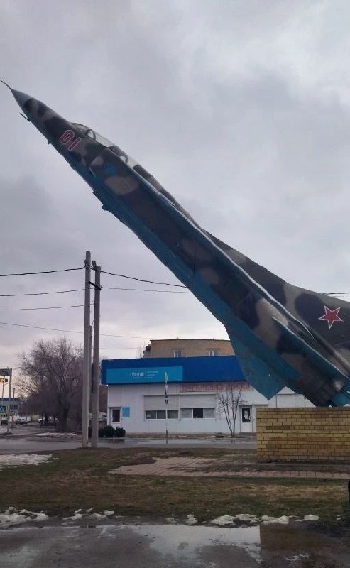 🙏 👉Срочный капитальный ремонт требуется памятнику, а точнее постаменту, на котором установлен МиГ-23УФ. Пьедестал знаковой для города достопримечательности буквально трещит по швам. Обращаемся к ответственным за сохранность памятника лицам с просьбой привести его в порядок☝ _____ Надеемся, что трещина никак не влияет на механизм, удерживающий самолёт, иначе взмывающий в небо рискует потерпеть крушение. 🤔