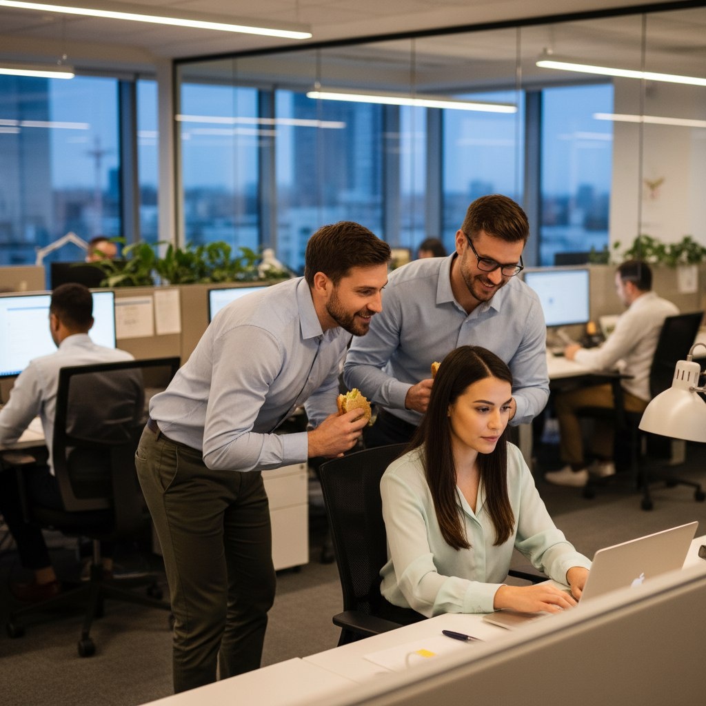 В отделе маркетинга небольшой IT-компании работа шла размеренно, пока не появилась Аня. Она пришла на позицию дизайнера — тихая, с легкой полуулыбкой и привычкой заправлять прядь волос за ухо, когда волновалась. В первый же день ее заметили двое. Денис, руководитель отдела продаж, был воплощением уверенности. Высокий, громкий, всегда с идеально завязанным галстуком. Он увидел в Ане ту самую «тихую гавань», которой ему не хватало после шумных совещаний и вечерних посиделок с партнерами. Он начал с малого: приносил ей кофе (такой, как она любила — капучино с корицей), задерживался после работы, чтобы «случайно» проводить до метро. Его ухаживания были настойчивыми, красивыми, напоказ. Он мог при всех сказать: «Аня, с вами даже отчеты смотреть приятно». Илья был полной противоположностью. Системный администратор, вечно в мятых джинсах и с рассеянным взглядом. Он не умел говорить комплименты, зато умел слушать. Аня рассказывала ему о своих старых котах, а он через неделу принес в офис миску