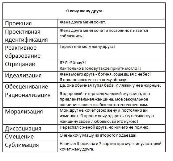 Психика может прибегать к таким способам защиты: