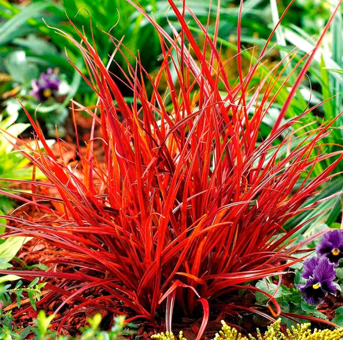 С злаками: Унциния Рубра прекрасно гармонирует с другими декоративными злаками. Например, с вейниками, мискантусами или овсяницами. Сочетание различных текстур и форм злаковых растений создаст естественный, природный вид, а яркий цвет Унцинии добавит в эту композицию изюминку.