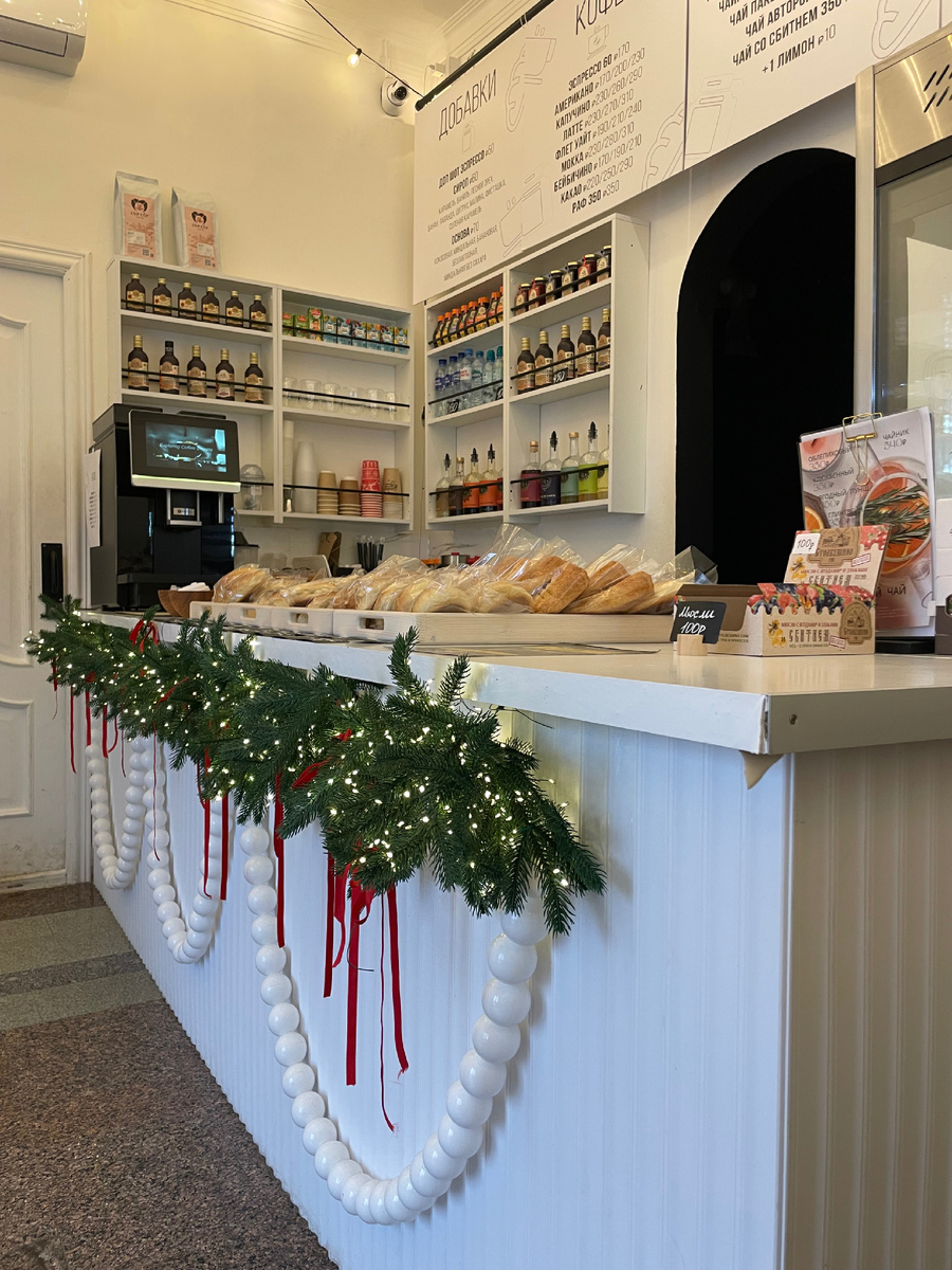 Уютная тихая кофейня рядом с Никольским храмом на Раушенской набережной, практически с видом на набережную, если повезет занять столик напротив большой стеклянной двери.
