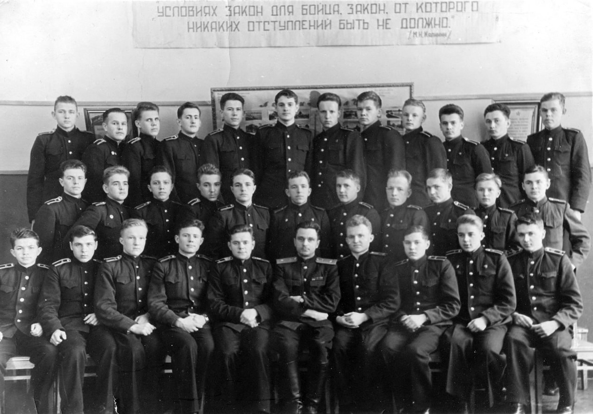 Групповая фотография воспитанников Ленинградского артиллерийского подготовительного училища со своими командирами