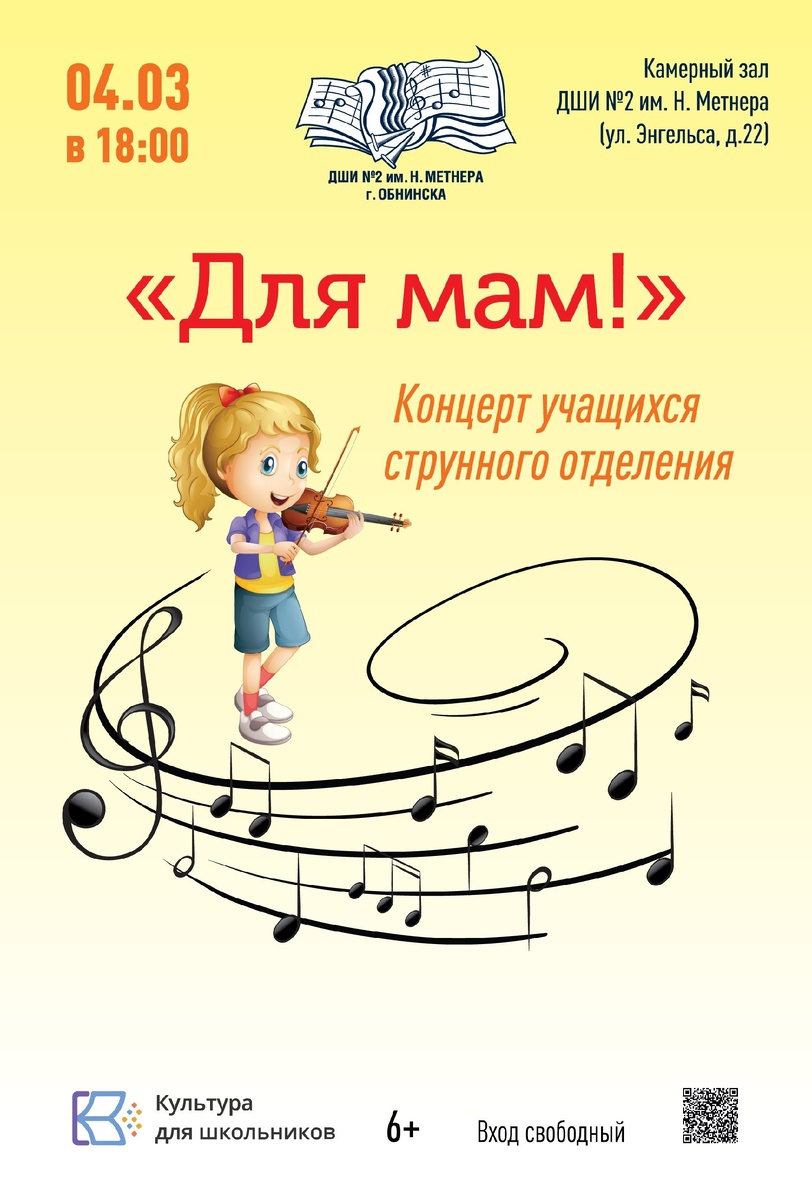 🎶4 марта в 18:00 в ДШИ №2 им. Н. Метнера в Обнинске пройдёт концерт учащихся струнного отделения, приуроченного к Международному дню 8 марта.