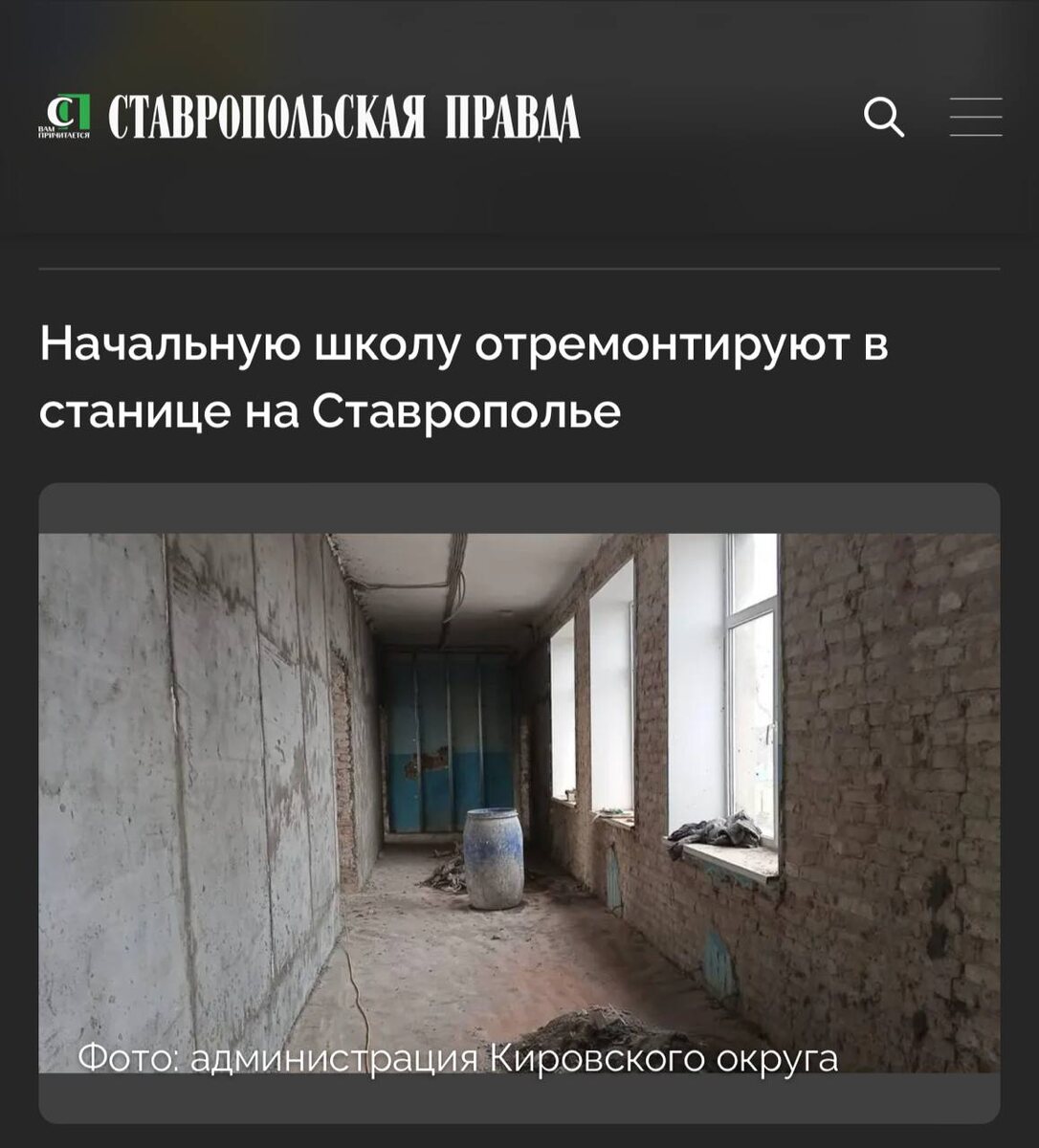 В станице Советской Кировского округа активно продолжается капитальный ремонт начальной школы №3. Эти работы осуществляются в рамках регионального проекта «Всё лучшее детям», который является частью национального проекта «Молодежь и дети». На реализацию проекта выделено 37 миллионов рублей. В ходе ремонта будут обновлены кровля и фасад здания, заменены все коммуникации и полностью модернизированы учебные кабинеты. В настоящее время строительные бригады занимаются штукатурными работами, а также установкой систем электроснабжения и теплоснабжения. Особое внимание уделяется подготовке кровли к ремонту и огнезащитной обработке деревянных балок. «Мы планируем завершить все работы и открыть обновленную школу до 20 августа», — сообщил глава Кировского округа Николай Новопашин. Кроме того, в этом году в Кировском округе по нацпроекту будет проведен ремонт школы №7 в поселке Коммаяк. Ранее губернатор Владимир Владимиров поручал миндору Ставрополья контролировать заключение контрактов на рем