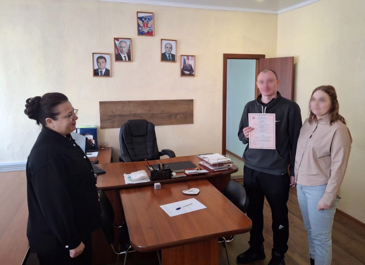 Осужденный познакомился с будущей супругой 3 года назад еще до того, как попал в колонию-поселения. На протяжении всего этого времени они общались, потом решили связать себя узами брака. Молодожены обменялись кольцами и поставили подписи в акте гражданского состояния, после чего получили свидетельство о заключении брака. Как отмечает заместитель начальника КП-12 Ильдар Булатов, стремление осужденных создать семьи положительно сказывается на их поведении во время заключения и после освобождения. Сотрудники готовы оказывать содействие в налаживании и поддержании семейных связей, как это предусмотрено законодательством. Фото пресс-службы УФСИН России по Оренбургской области