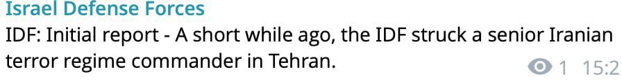В ЦАХАЛ заявили, что нанесли удар по высокопоставленному командиру иранской армии.
