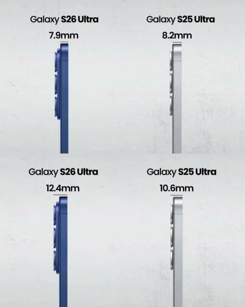- Дизайн – эволюционное обновление. Если поставить рядом S25 Ultra и S26 Ultra, отличить сможет не каждый
