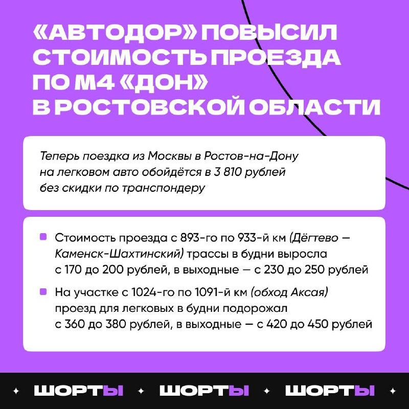 «Автодор» повысил стоимость проезда по М4 «Дон» в Ростовской области