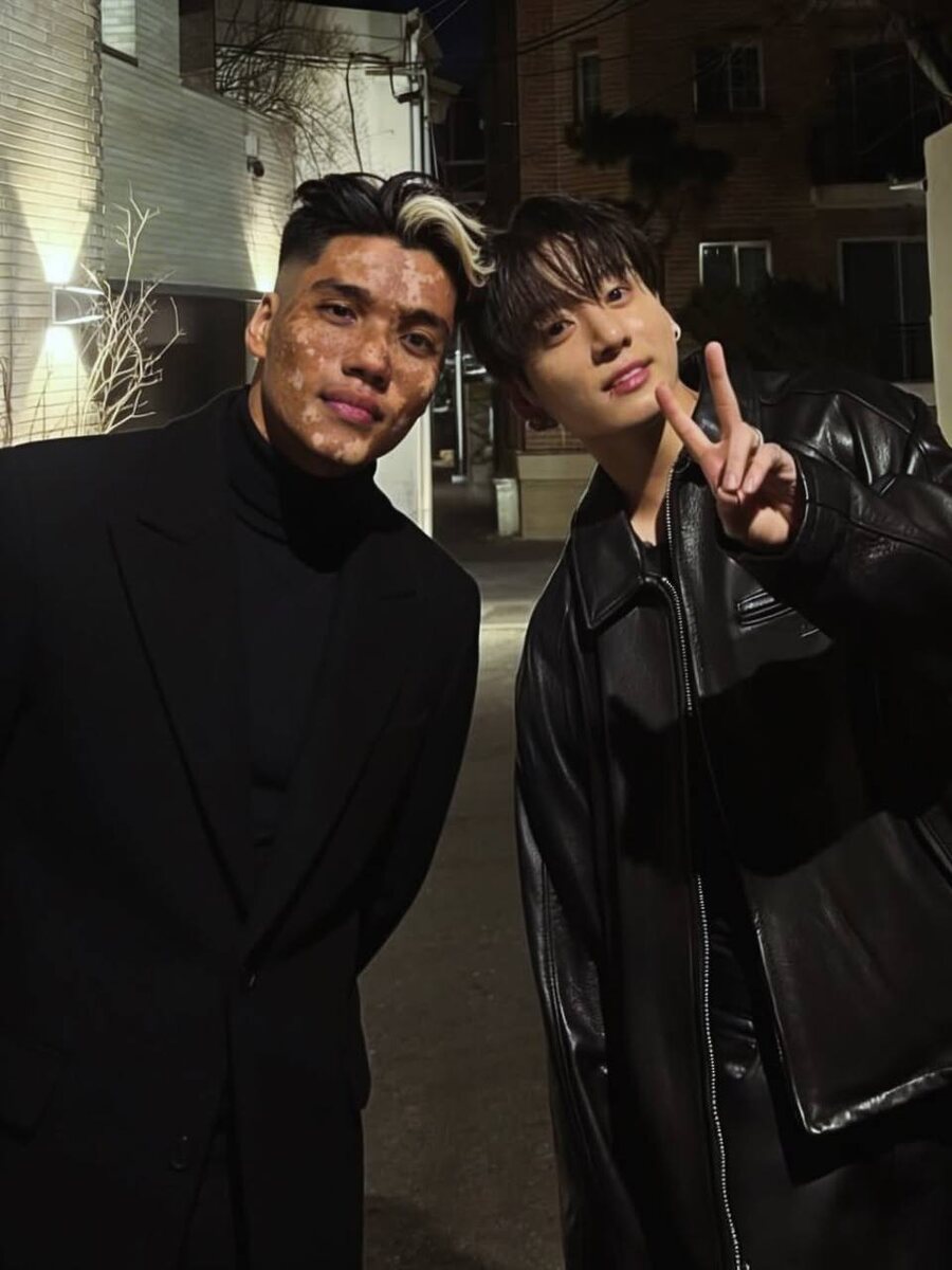 На фотографии, сделанной в сумерках на одной из улиц Сеула, стоят двое. С одной стороны – золотой макнэ BTS, Чон Чонгук, с его уже легендарной челкой, в кожаной куртке, излучающий привычную харизму, но при этом удивительно спокойный. С другой – парень с уникальным лицом, на котором выделяются светлые пятна витилиго. Он улыбается, и в этой улыбке читается столько счастья, изумления и глубокого чувства, которое не передать словами. Его пост в социальных сетях, кажется, выражает чувства каждой Арми, мечтающей о такой встрече: