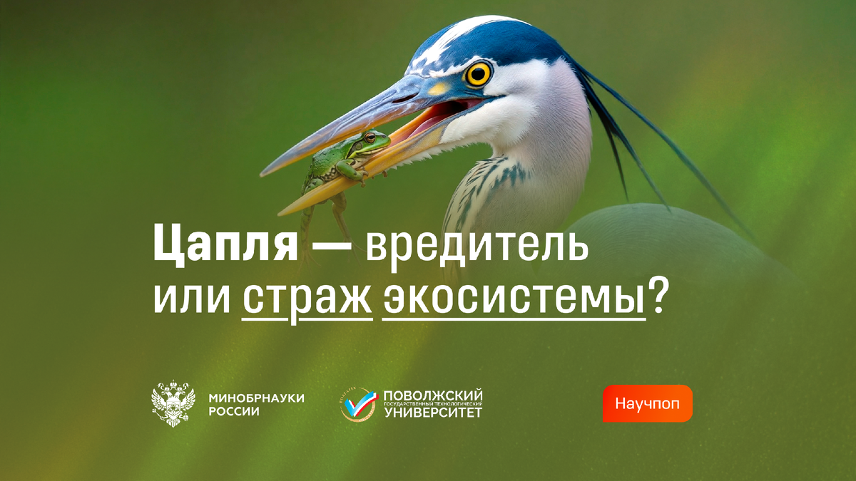 Об истинной роли этой птицы в природе рассказывает кандидат сельскохозяйственных наук, доцент Поволжского государственного технологического университета Максим Ануфриев. Серая цапля (Ardea cinerea) — крупная птица отряда пеликанообразных, семейства цаплевых, с длинными ногами и изящной шеей. Высота птицы достигает 90–98 сантиметров при размахе крыльев 175–195 сантиметров. Впервые она была научно описана шведским ученым Карлом Линнеем в 1758 году. Вид широко распространен на территориях Евразии и Африки. Птицы предпочитают селиться возле мелководных водоемов и избегают глухих лесных массивов. В России ареал цапли простирается от западных до восточных границ страны, достигая северных пределов в зоне средней тайги. Глядя на длинные ноги этой птицы, сложно представить ее в роли пловца. Однако цапли прекрасно адаптированы к жизни у воды и относятся к так называемым «бродовым» птицам, для которых естественная среда обитания — мелководные участки водоемов. Их жизнь тесно связана с прибрежной