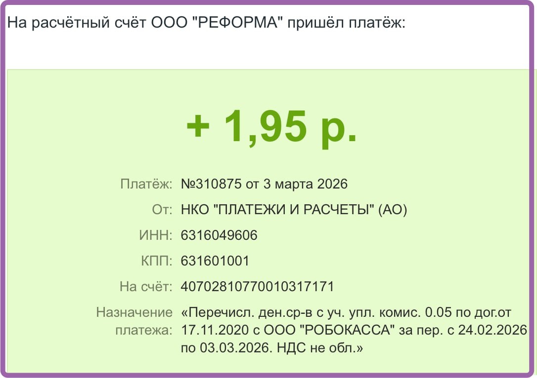 Робокасса так выплачивает. Регулярно, сама. Указываешь расчетный счет и потом просто приходят деньги. Вообще рекомендую Робокассу, столько лет вместе - нареканий нет. Даже на сушки в офис не хватит :) Русский ИТ бизнес +✅Мы в MAX