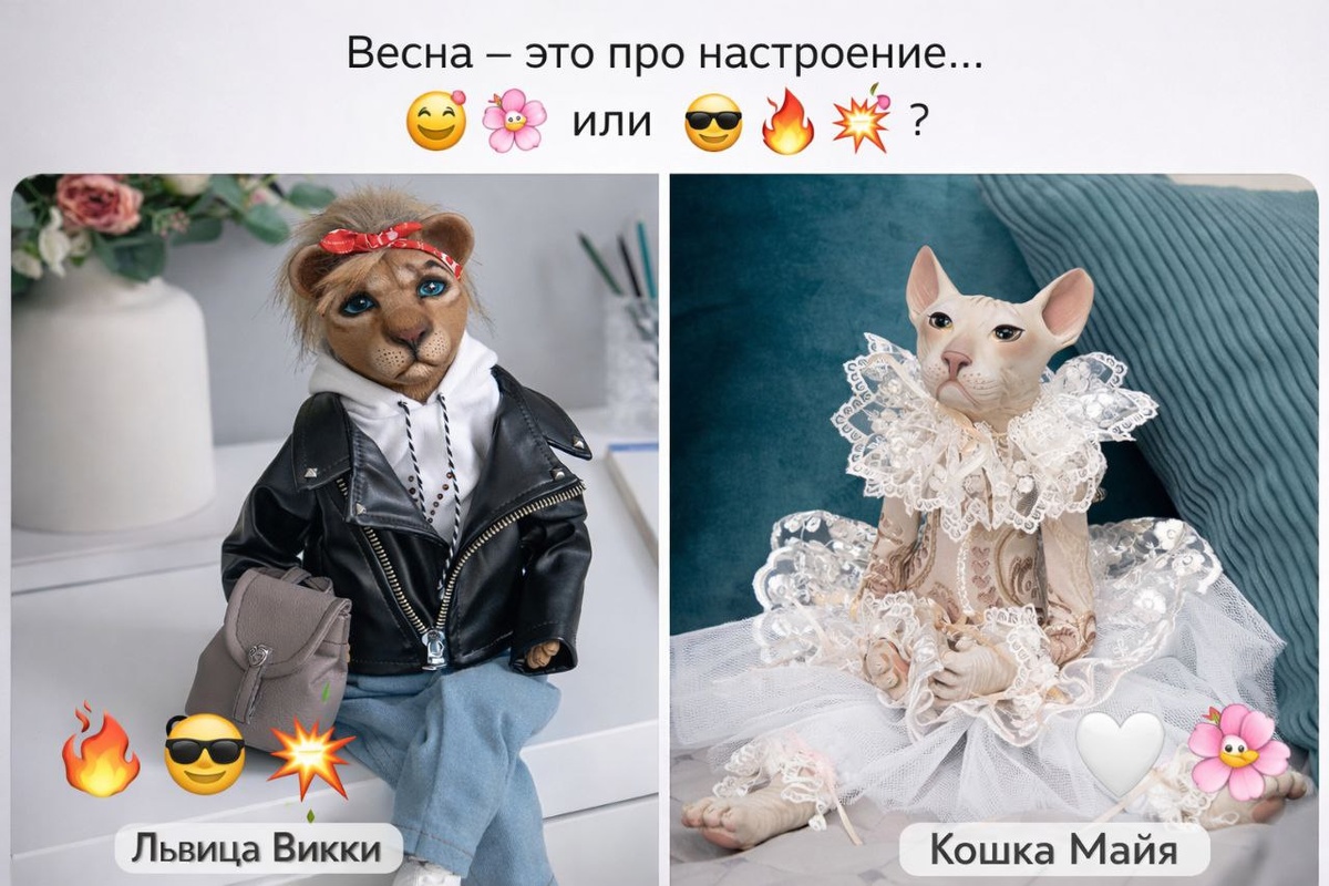 Про внутренний выбор: сегодня я нежность… или дерзость? 💘😌🤍 или 🔥😎💥? Встречайте битву образов и характеров: 🦁 Кукла коллекционная Львица Викки — дерзкая, смелая, с характером. Она про уверенность, про шаг вперёд, про «я так решила». 🐱 Кукла коллекционная Кошка Майя — нежная, воздушная и утончённая. В её взгляде — тишина весеннего утра. Или, может быть… всё вместе? Весна ведь позволяет быть разной ⭐️ Наши коллекционные куклы ручной работы — это не просто предмет интерьера, а настоящее произведение искусства. Сегодня вы какая? Покажите своё настроение в комментариях смайликами 👇 Нежная и утончённая 💘 Смелая, с характером🔥