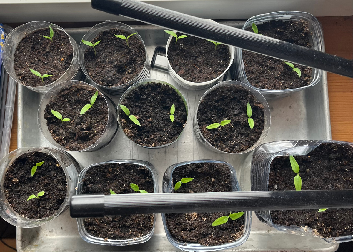 Поставила им лампу, вечерами включаю. Ну и уже появились первые настоящие листочки, помимо чашелистиков, но еще пока еле заметно.