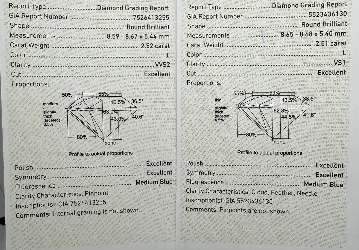 🔥 Идеальные бриллианты 💎💎 ✔️Вес 2.50 ct каждый бриллиант ✔️Цвет L ( чем больше бриллиант тем менее видно оттенок- запоминаем шпаргалку) 🌟 ✔️Идеальные параметры Excellent ✔️Качество VVS12-VS1 ✔️Флуоресценция MB ✔️Сертификат GIA #GIA #onlydiamond #Diamond 📨 за подробностями - @onlydiamondchat