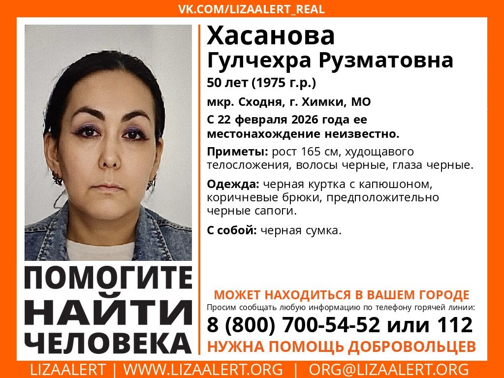 «Лиза Алерт» ищет пропавшую 50-летнюю жительницу соседней Сходни Гулчехру Хасанову. По данным волонтеров, пропавшая может находиться в Зеленограде.
